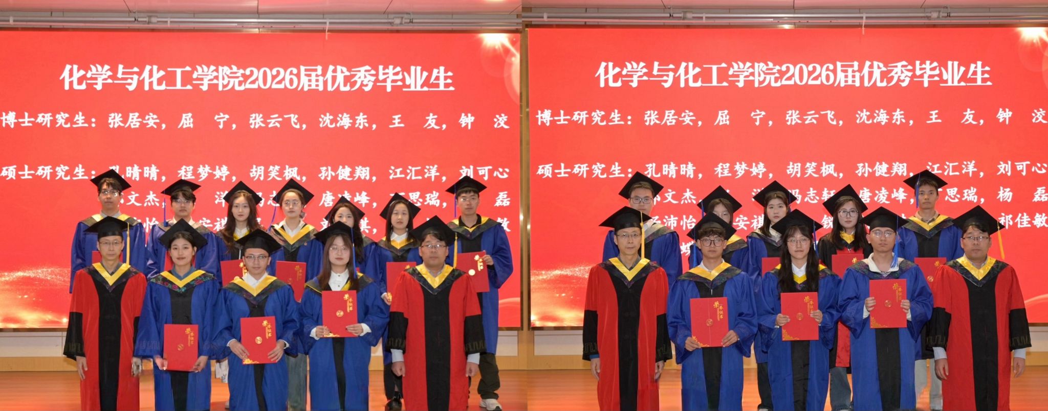 拨穗礼成,仪式有终,征程无尽。衷心祝愿全体2026届毕业生前程似锦,在未来的工作中恪守“公诚勇毅”校训,弘扬“三实一新”校风,在各自的领域里,成为熠熠生辉的分子,去合成崭新的未来。学院永远是你们可以回望的灯火与归航的港湾,愿诸位前程远大,各自灿烂。