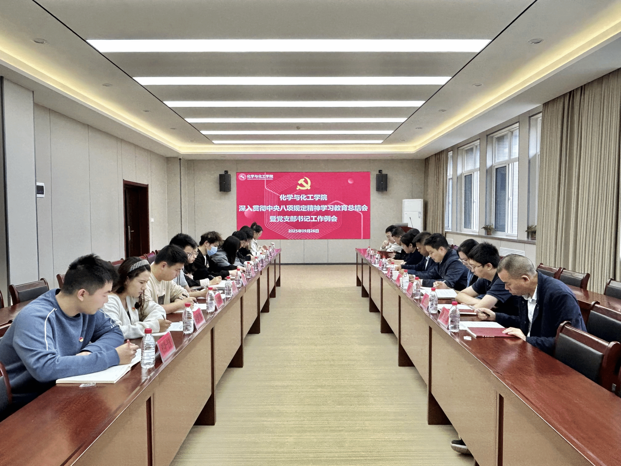 9月26日,化学与化工学院召开深入贯彻中央八项规定精神学习教育总结会暨党支部书记例会。学院党委书记傅茂森、党委副书记姚东东及师生党支部书记参加会议。会议由姚东东主持。