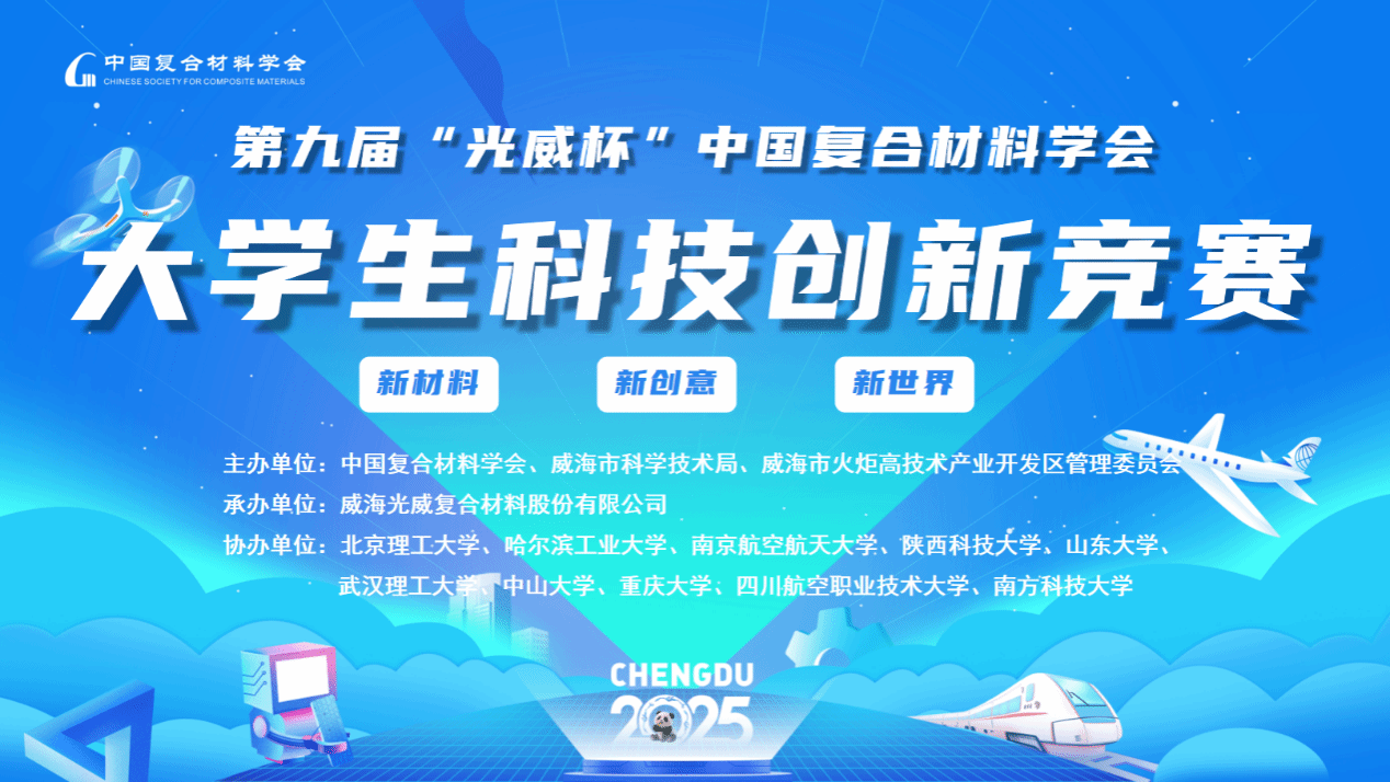 2025年10月24-25日,由中国复合材料学会、威海市科学技术局、威海市火炬高技术产业开发区管理委员会共同主办的第九届“光威杯”中国复合材料学会大学生科技创新竞赛决赛在四川成都圆满举办。