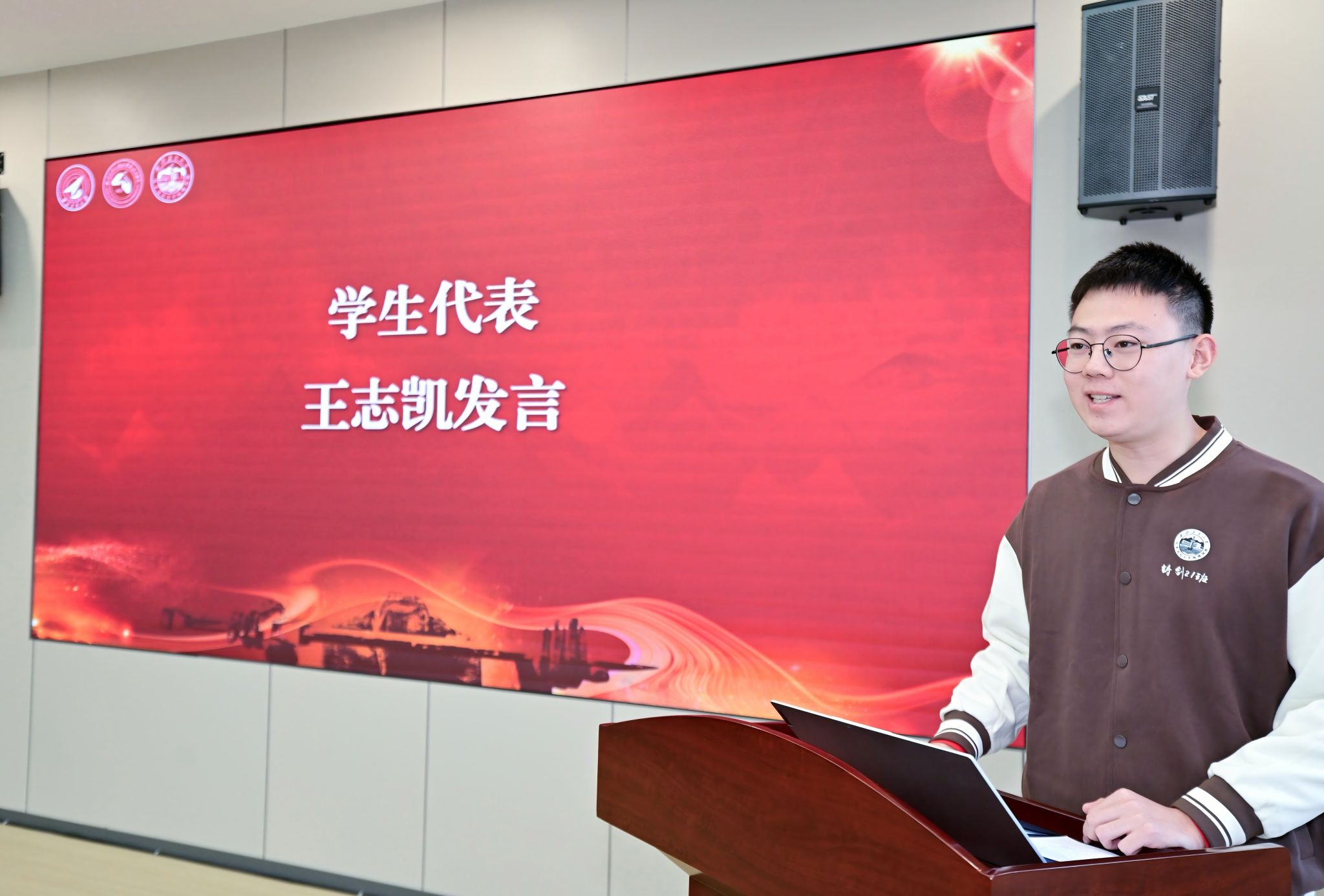 2024级本科生王志凯作为学院铸剑班学生代表发言。他表达了对学院提供优质平台的感激之情,并代表全体同学郑重承诺:将恪守“铸剑”班训,珍惜韶华,勤勉学习,团结互助,追求卓越,决不辜负学校的培养与时代的召唤,努力为化学化工事业和国家科技自立自强贡献青春力量。