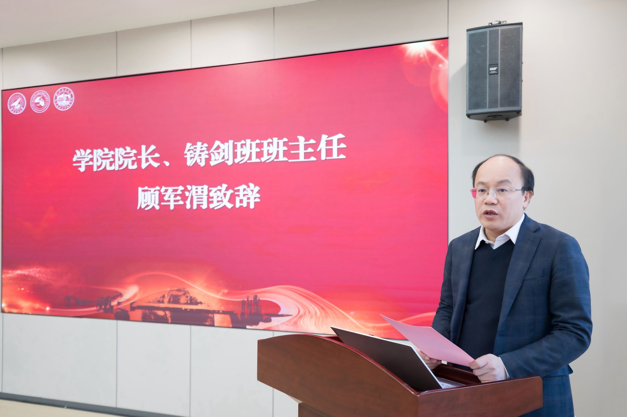 院长、“铸剑班”班主任顾军渭代表学院向首批入选化学与化工学院“铸剑班”的同学表示祝贺。他指出,学院设立“铸剑班”是落实学校“为党育英才、为国铸重剑”育人理念的重要实践,旨在将西工大“扎根奉献、追求卓越”的精神特质与化学学科的前沿探索深度融合,培养未来能“坚守科技阵地、铸就国之重器”的领军人才。作为班主任,他将与全体导师通力协作,当好学生成长道路上的同行者与支持者,共同将“铸剑21班”打造成为学院人才培养的标杆,使其真正成长为守护国家发展的“科技长剑”。