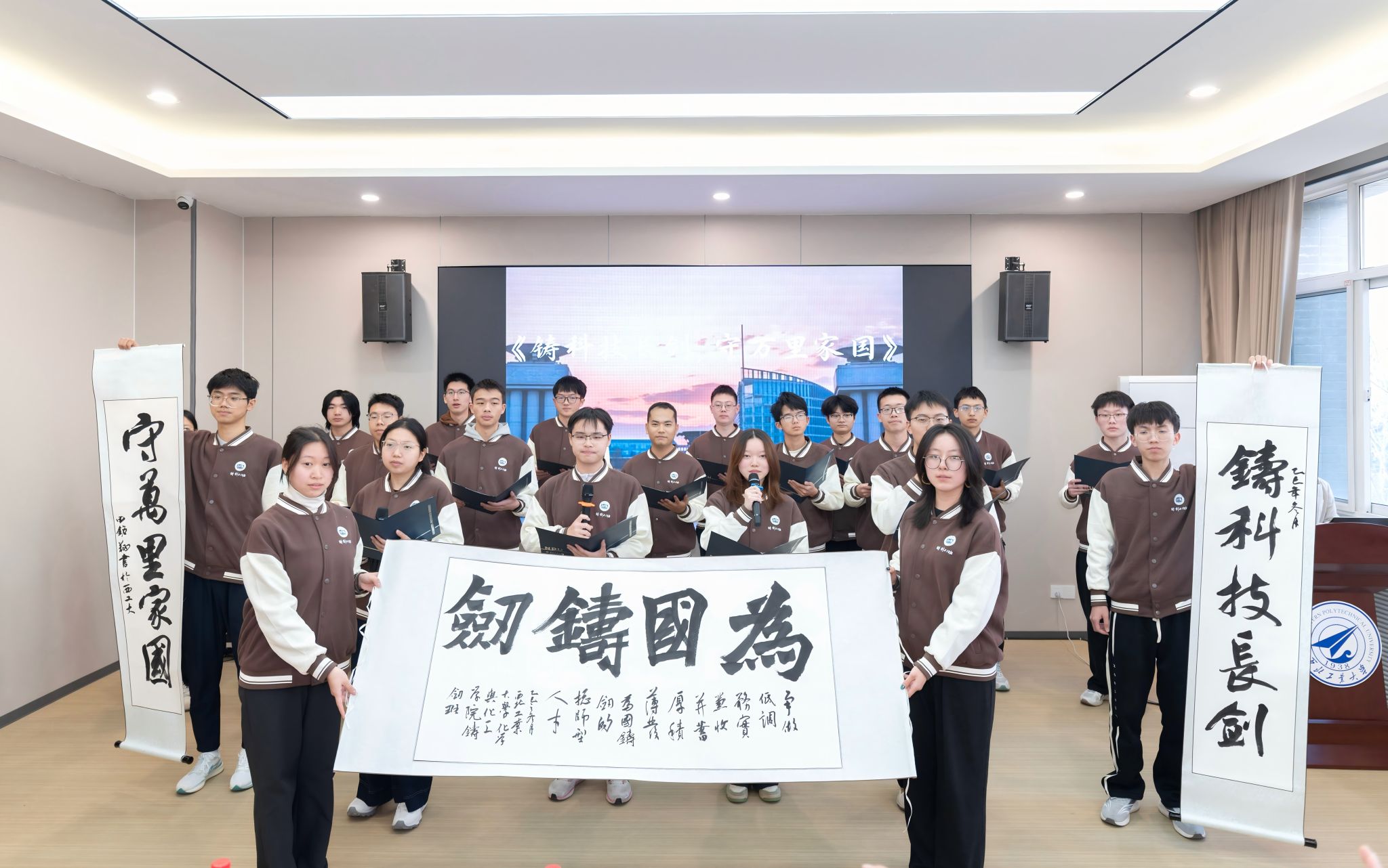 随后,学院铸剑班全体21名同学精神饱满、声音洪亮地朗诵了《铸科技长剑 守万里家国》,铿锵有力的誓言回荡在会场,展现了铸剑班学子昂扬的斗志和坚定的信念。
