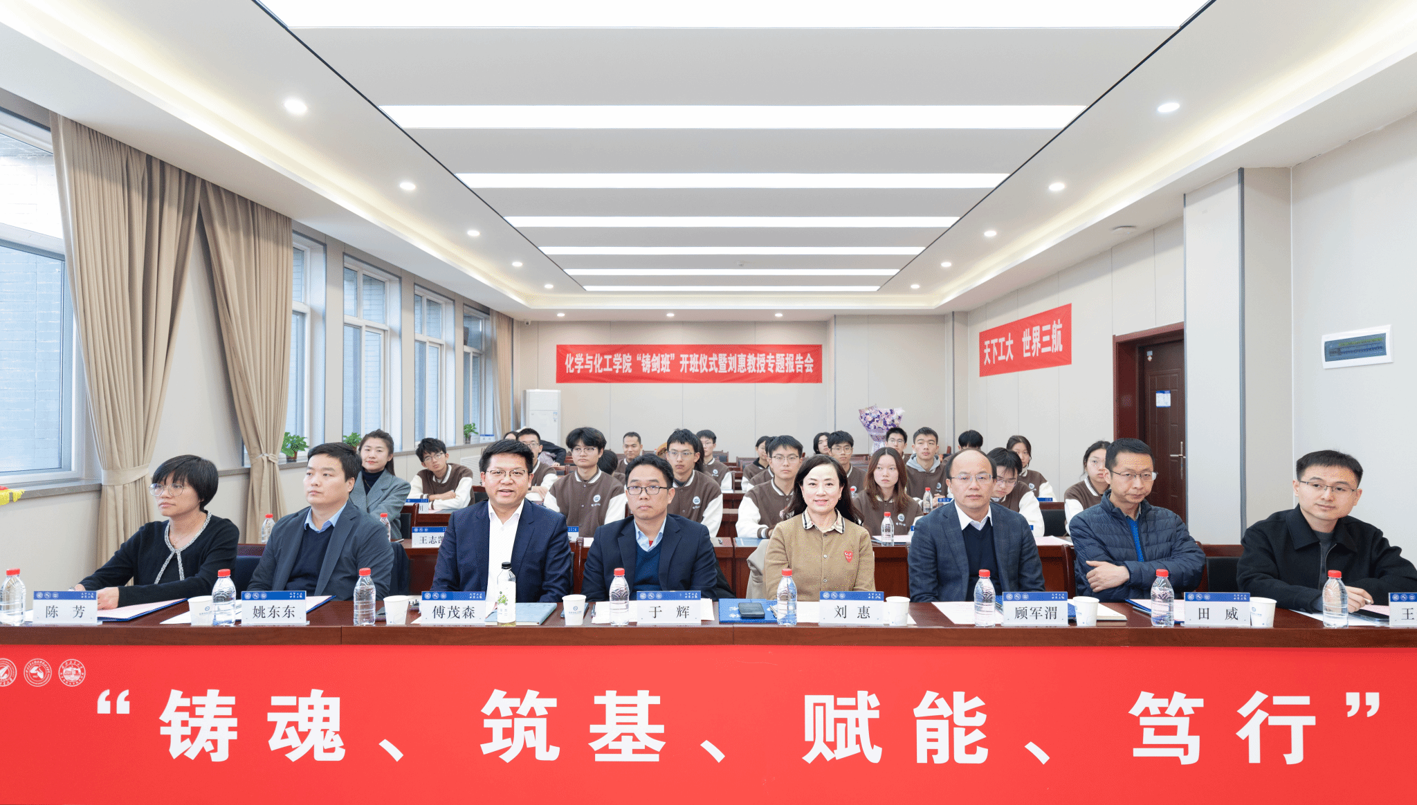 化学与化工学院“铸剑班”开班仪式暨刘惠教授专题报告会于12月18日在学院楼258会议室成功举行,全国高校美育指导委员会委员、西北工业大学艺术教育中心首席专家刘惠教授、党委学生工作部部长于辉、学院院长顾军渭等领导嘉宾与全体21名学员共同见证这一重要时刻。仪式在庄重热烈的氛围中拉开帷幕,活动由学院党委书记傅茂森主持。