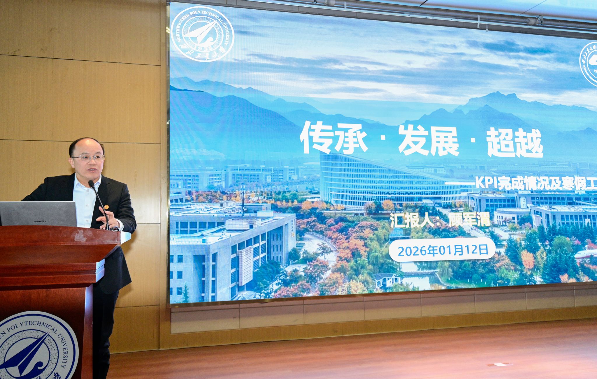 顾军渭围绕学院KPI中期进展作专题汇报,并部署寒假重点工作。他表示,学院中期目标责任制任务的完成离不开全体教职工的奋力拼搏。他强调,安全与保密是学院发展的底线和红线,放假前各实验室要做好安全问题整改,杜绝隐患,严格落实保密责任。2026年是“十五五”规划开局之年,站在新的发展起点,希望全体教师持续深入领会学校第十四次党代会精神,紧扣学校“一十百千”发展目标与岗位目标责任制任务,踔厉奋发、砥砺前行,以更加饱满的热情、更加扎实的作风投身工作,推动学院各项事业传承、发展和超越。