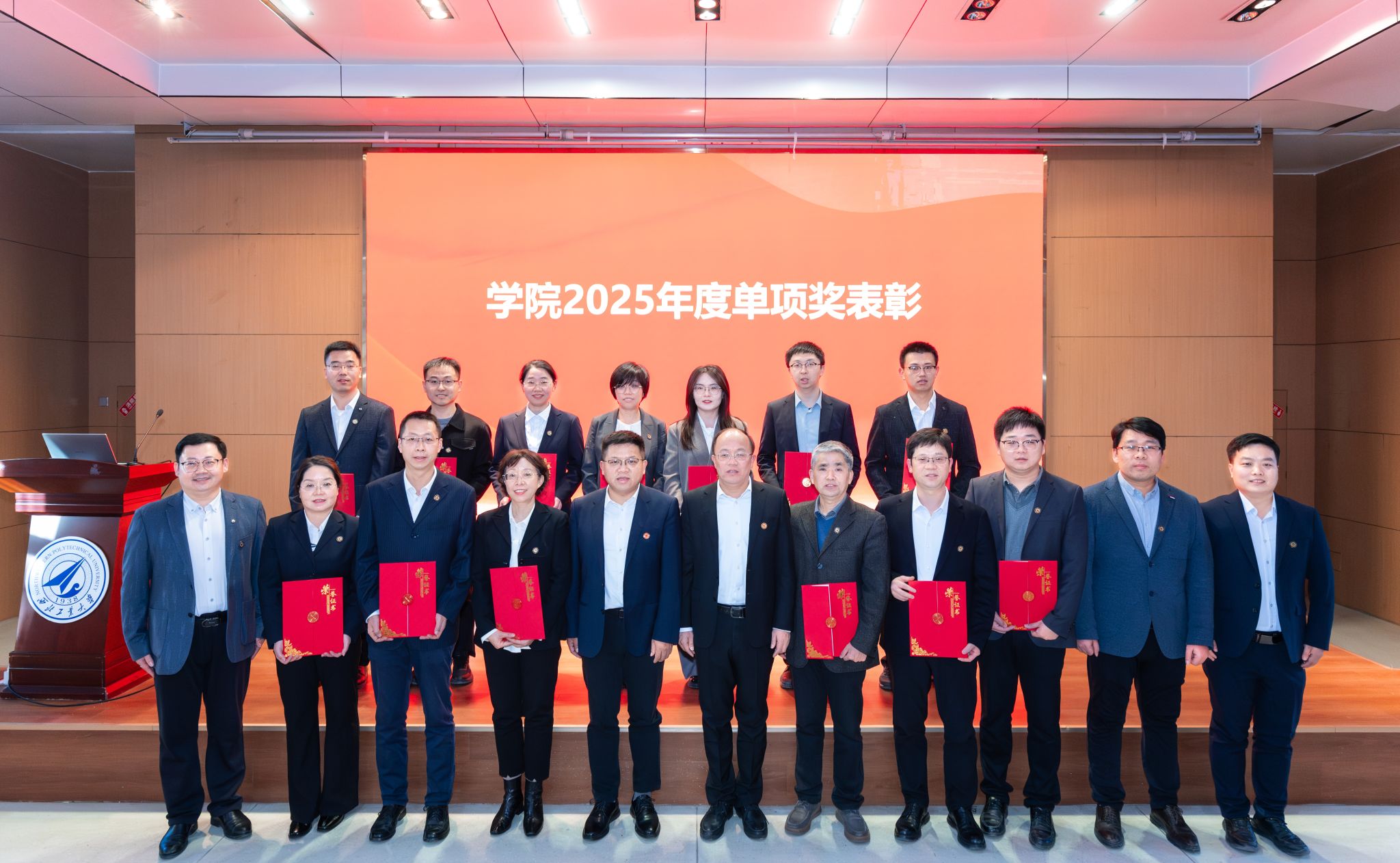 学院对获得2025年度科技贡献奖、育人贡献奖、国际合作先进个人、安全之星、科技新星、公益之星等单项荣誉的16位教职工进行表彰。学院领导为获奖教师颁奖。